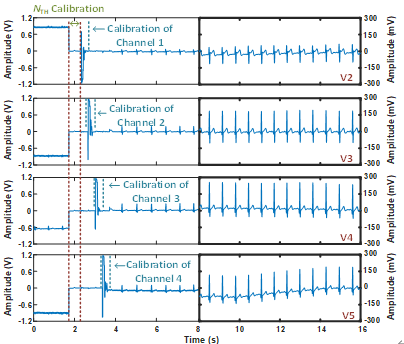 其次,设计了一种基于五相相位交错脉宽调制的直流伺服环路,将谐波能量移至更高频段以便滤除,从而在有效抑制高达350 mV电极直流偏移的同时,保持低频输入阻抗不受影响。